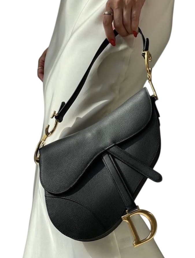 Este bolso es una declaración de estilo atemporal con su distintiva silueta en forma de silla de montar. Confeccionada en piel negra de grano fino, luce detalles metálicos dorados envejecidos, incluida la clásica “D” colgante que le da un toque sofisticado.