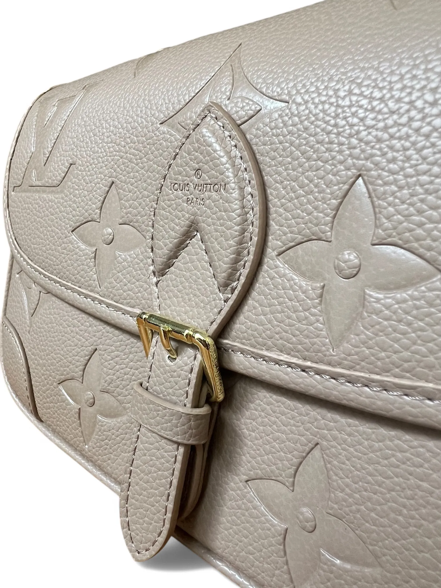 Detalles en tono dorado con logo grabado