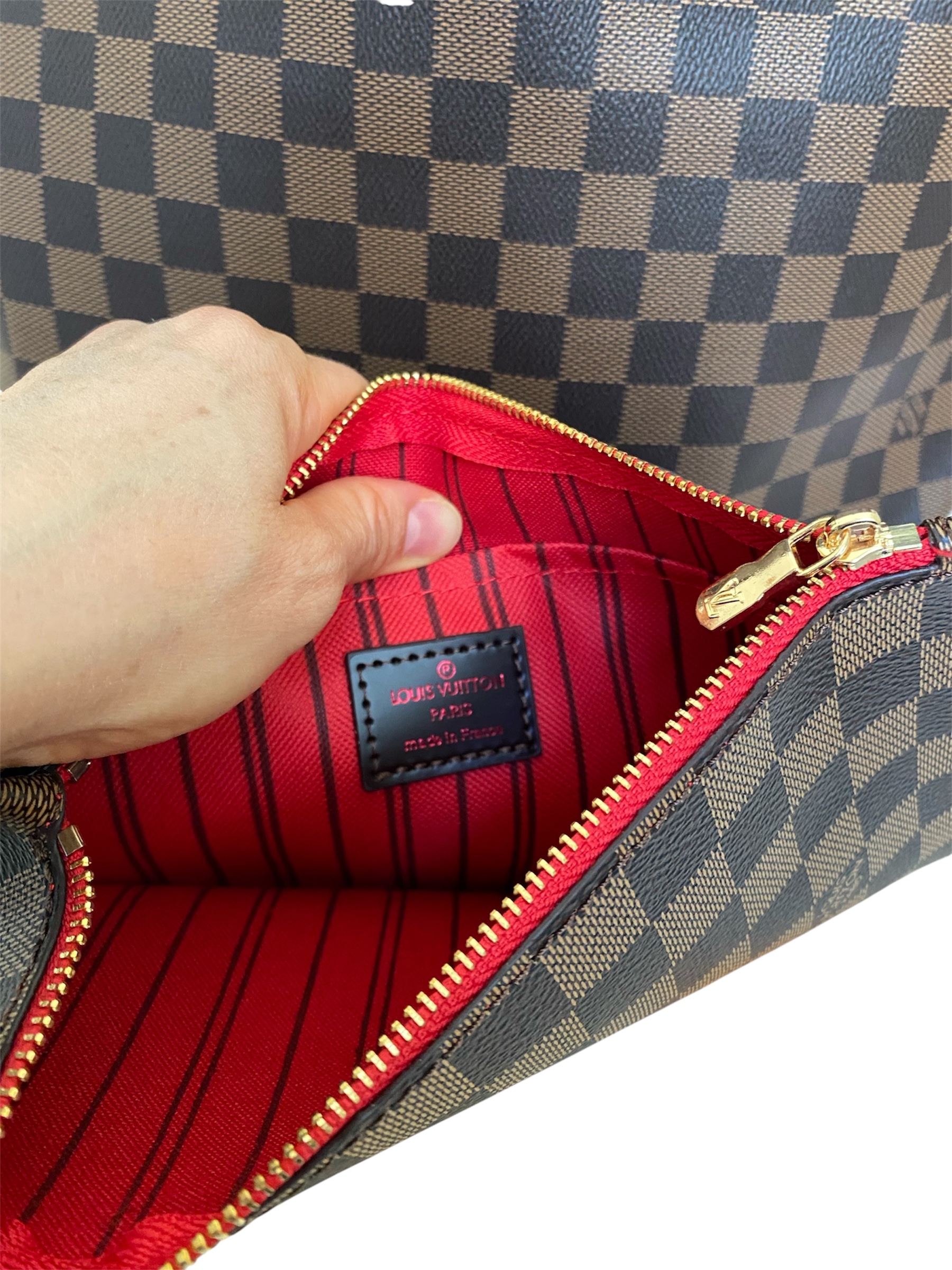 Neverfull MM cafe chocolate / interior rojo